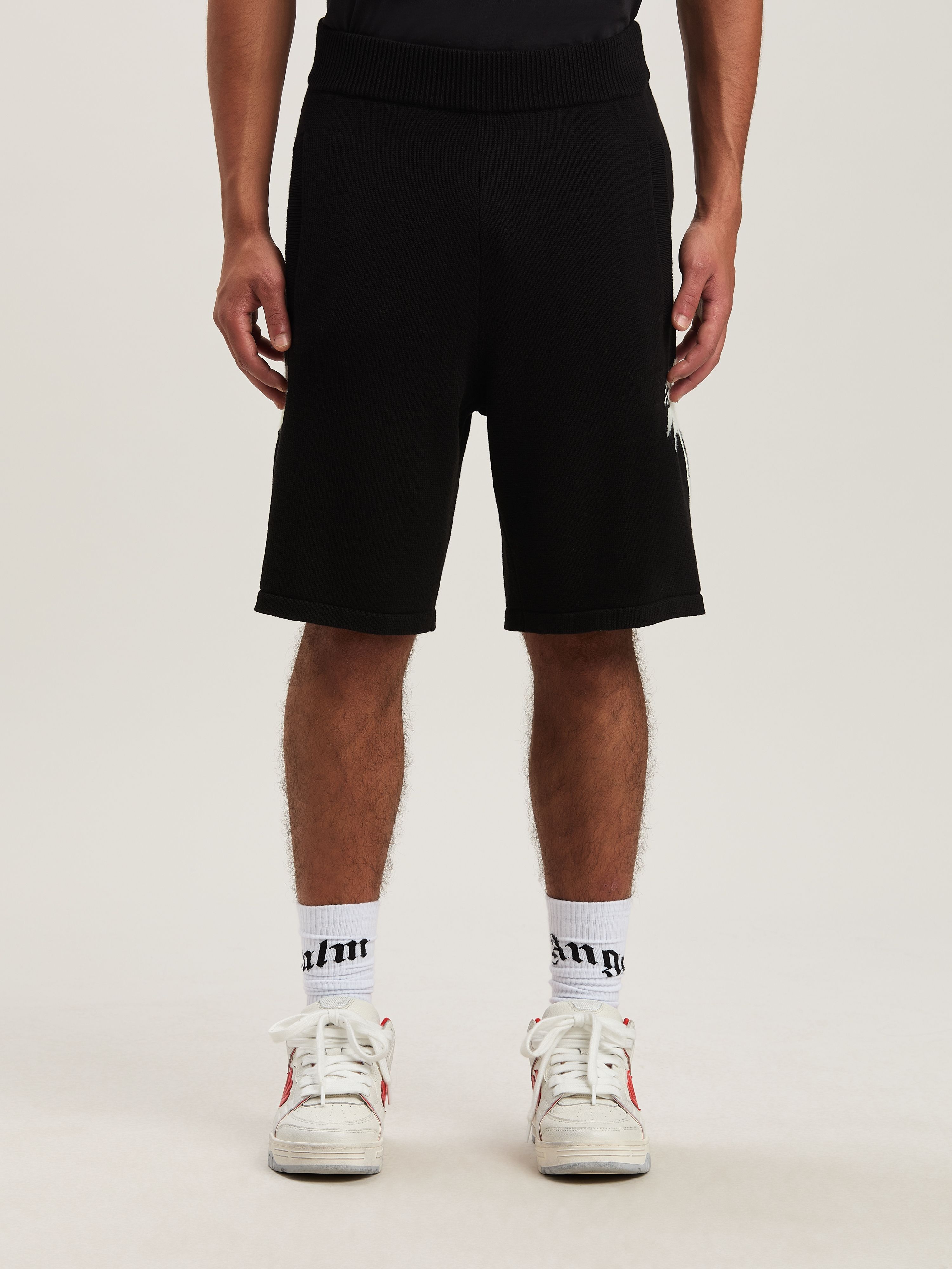 PALM ANGELS  PALMS KNIT SHORTS BLACK - OFF WHITE PMHM012S25KNI002